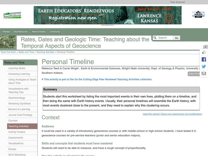 Use this activity to help students understand the history of Earth by creating their own timeline of their life. By creating their timeline, students can see the resemblance and make connections between Earth's history and their own....