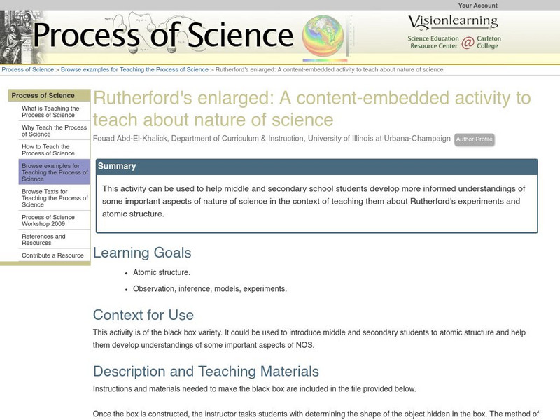 Serc: Rutherford's Enlarged: A Content Embedded Activity on Nature of Science