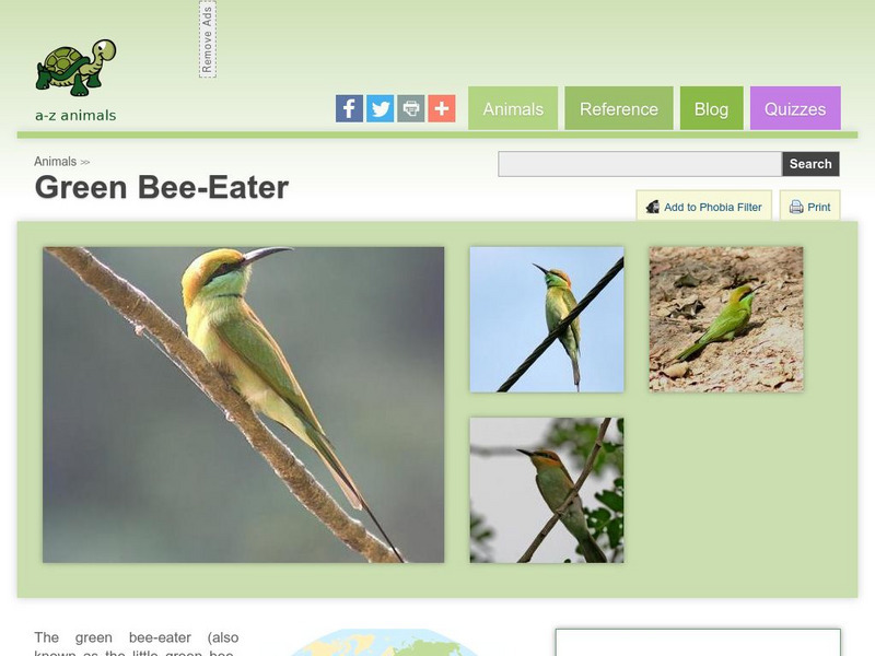 A Z Animals: Animal Facts: Green Bee Eater (Merops Orientalis)