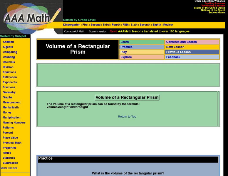 Aaa Math: Volume of a Rectangular Prism