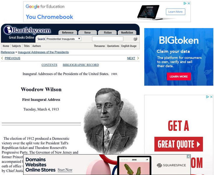 Bartleby.com: bartleby.com: Presidential Inaugural Address: Woodrow Wilson First