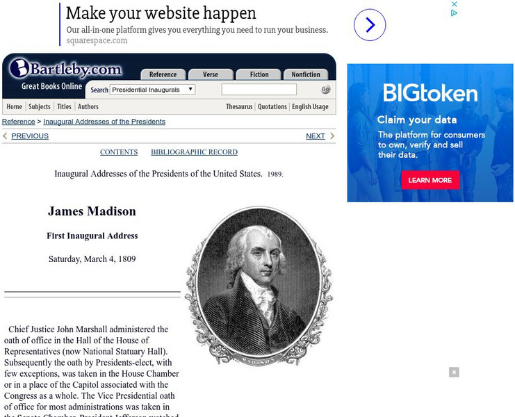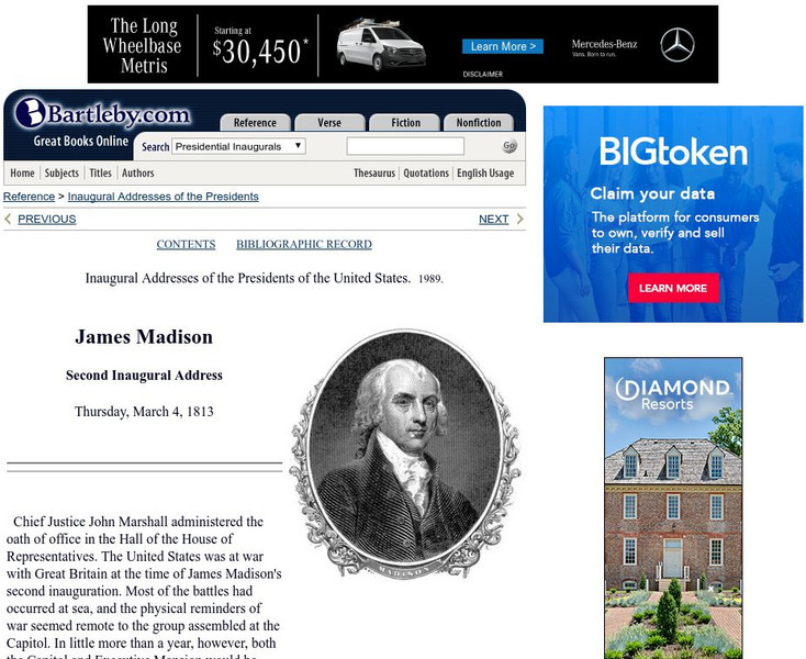 Bartleby.com: bartleby.com: Presidential Inaugural Address: James Madison Second