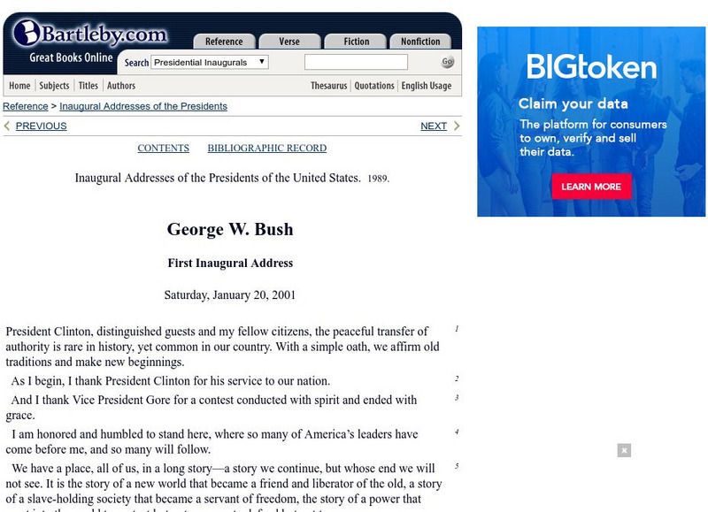 Bartleby.com: bartleby.com: Presidential Inaugural Address: George W. Bush: 1st