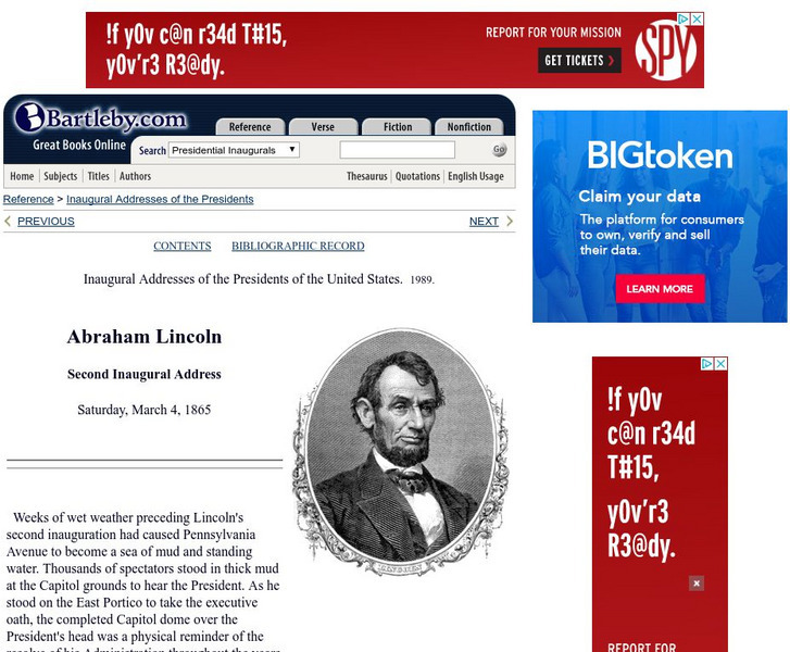 Bartleby.com: bartleby.com: Presidential Inaugural Address: Abraham Lincoln: 2nd