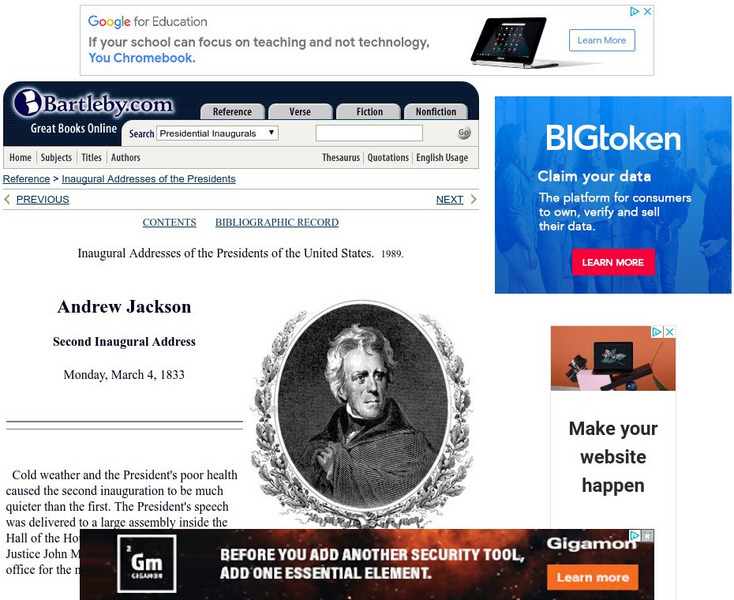 Bartleby.com: bartleby.com: Presidential Inaugural Address: Andrew Jackson: 2nd