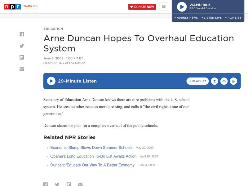 Npr: Arne Duncan Hopes to Overhaul Education