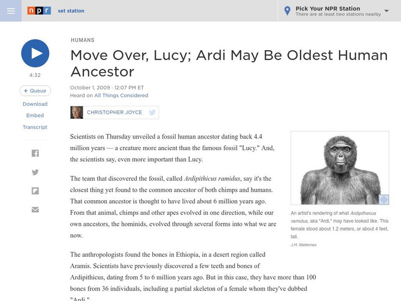Npr: Move Over, Lucy; Ardi May Be Oldest Human Ancestor