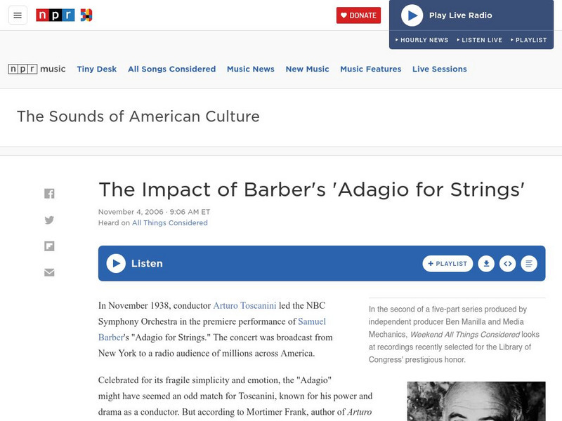 Npr: All Things Considered: The Impact of Barber's "Adagio for Strings"