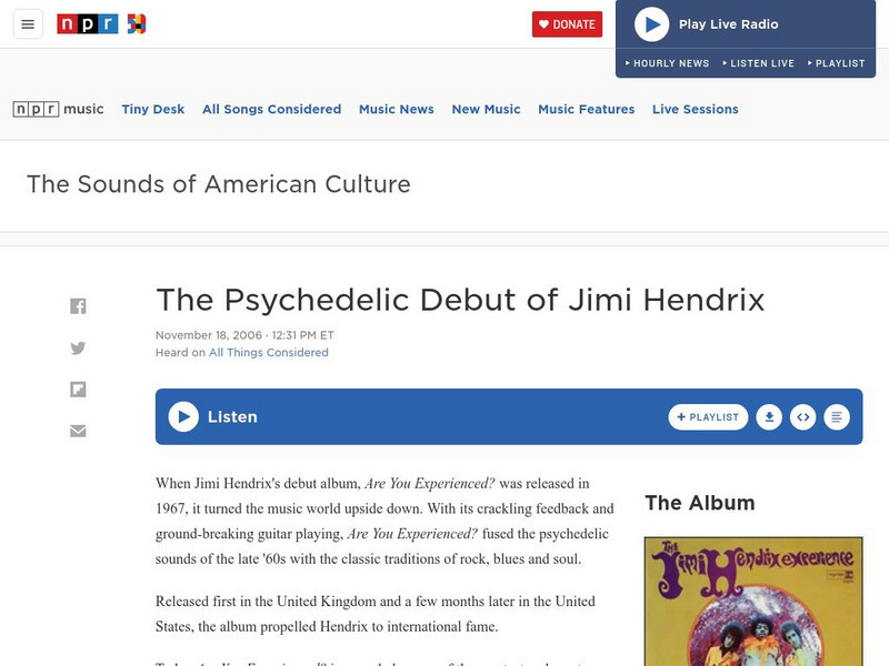 The original radio broadcast of this Jimi Hendrix story on All Things Considered by NPR is provided here with a full overview (complete with pictures and media samplings) in addition to a link enabling the user to listen to the original...