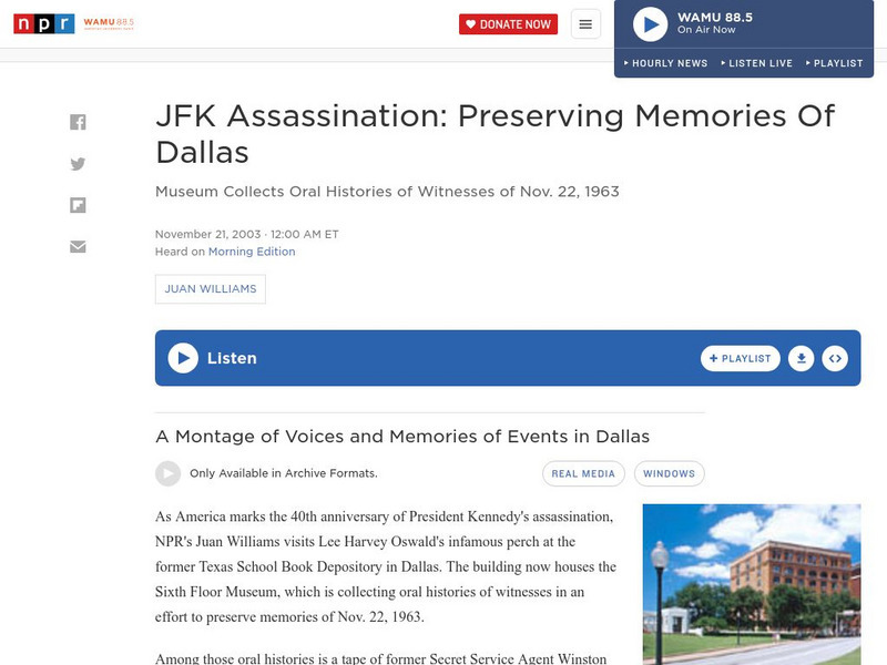 This site from NPR provides oral histories of witnesses to the Kennedy assassination saga.