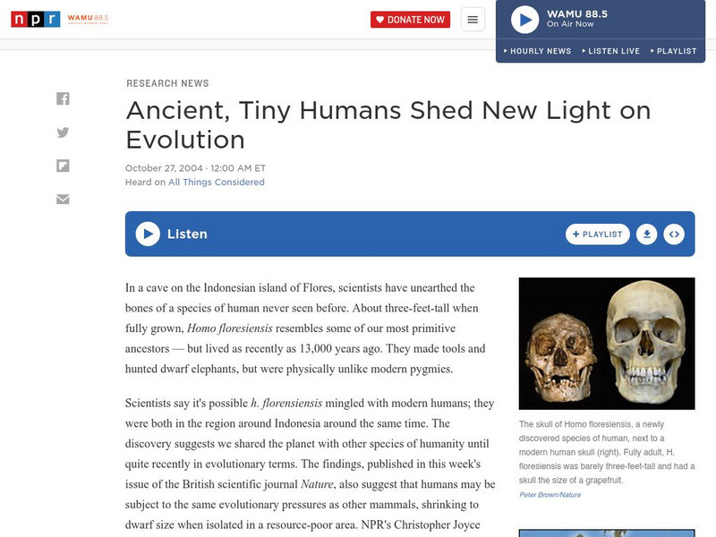 NPR audio content and article about the fascinating find in a cave in Indonesia -- fully formed bones of an adult who stood barely 3 feet tall and was alive during the time of Homo Sapiens.