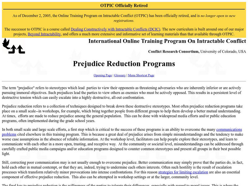 University of Colorado: Conflict Research Consortium: Prejudice Reduction Programs