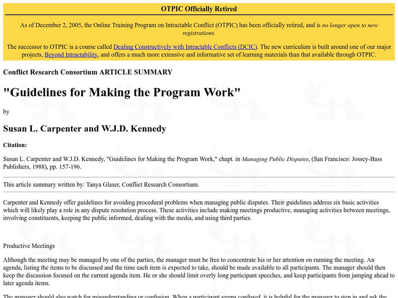 The site provides guidelines for facilitating a meeting that deals with conflict.