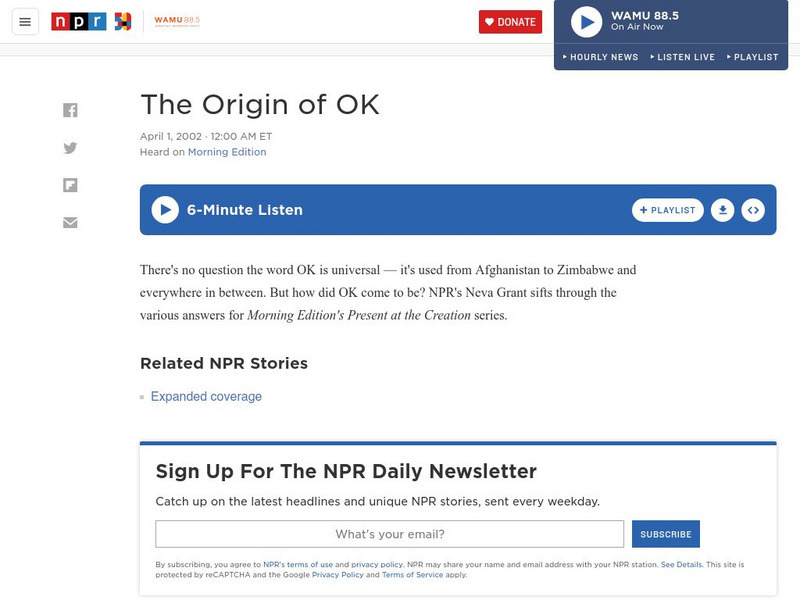 NPR discusses the popular expression "OK," and how it may have originated. "One of America's most popular exports," this response is heard around the world.
