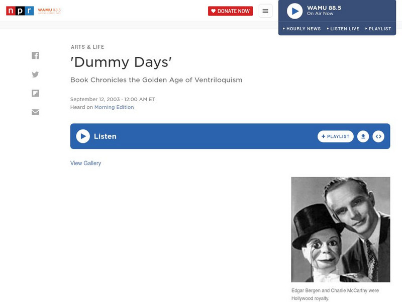 NPR provides a brief overview of ventriloquists of early radio and TV. Edgar Bergen and Charlie McCarthy are highlighted.