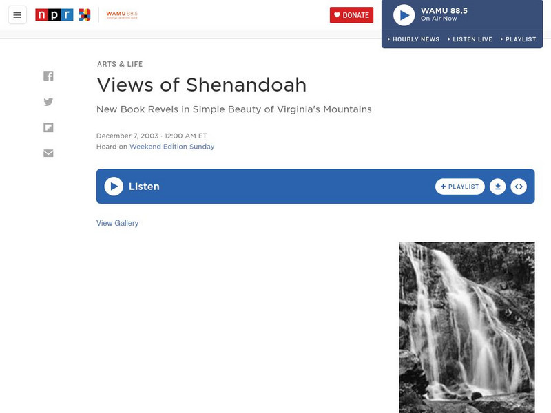 This NPR story covers the work of Hullihen Moore, a student of Ansel Adams, and his recent photo book of the Shenandoah Valley of Virginia. Beautiful black and white images of nature are here in the photo gallery.