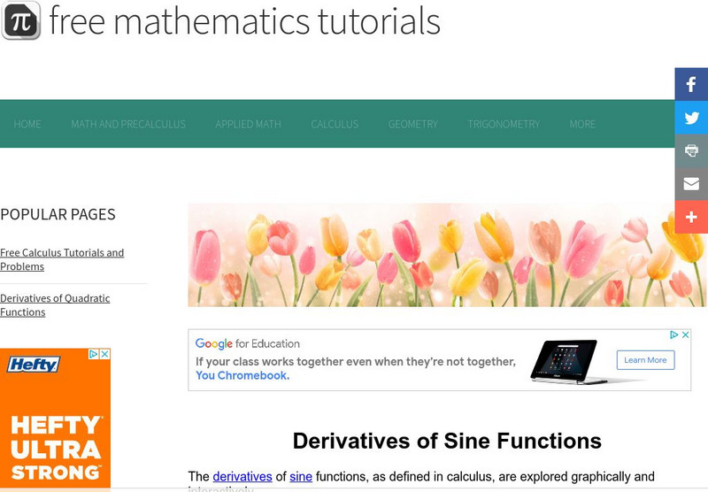 The interactive tutorial explores the graph of the derivative of sin (x).