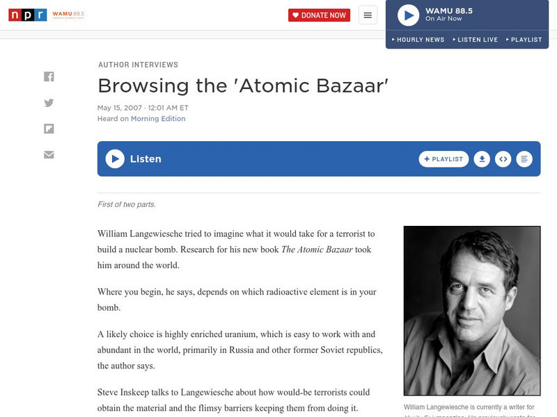 A May 2007 interview with William Langewiesche ,the author of "The Atomic Bazaar", in which he describes the efforts that would need to be taken inside of the old Soviet Union to acquire the radioactive elements needed to build an atomic...