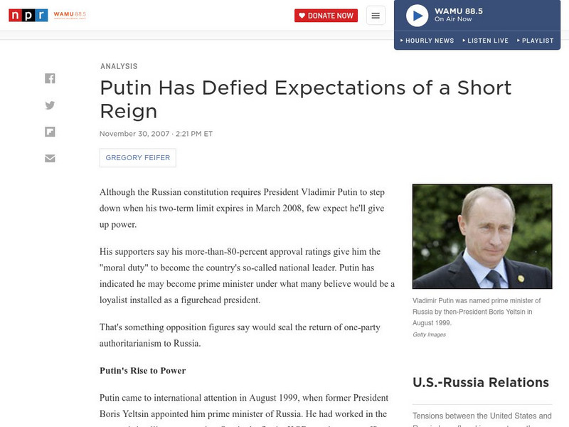 A November 2007 analysis of Vladimir Putin's staying power as Russia's President through almost two turbulent terms. Also provides links to related topics.