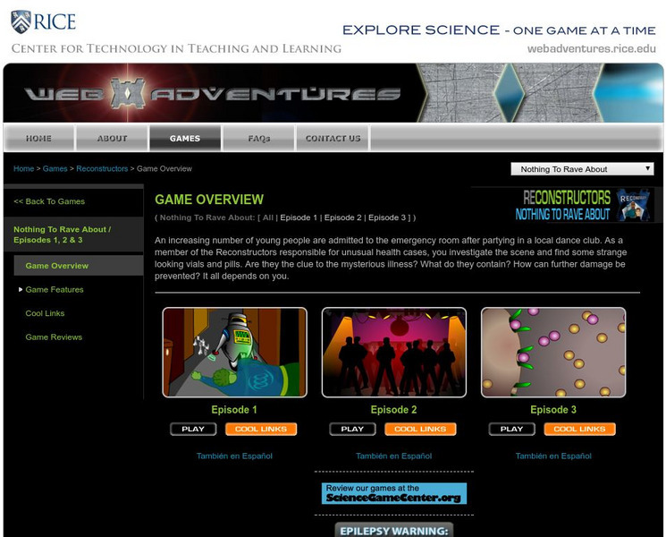 Online adventure game consisting of three consecutive episodes where you become a member of a team of scientists who investigate pain relieving drugs to see if they are safe. These virtual experiments cover concepts such as history of...
