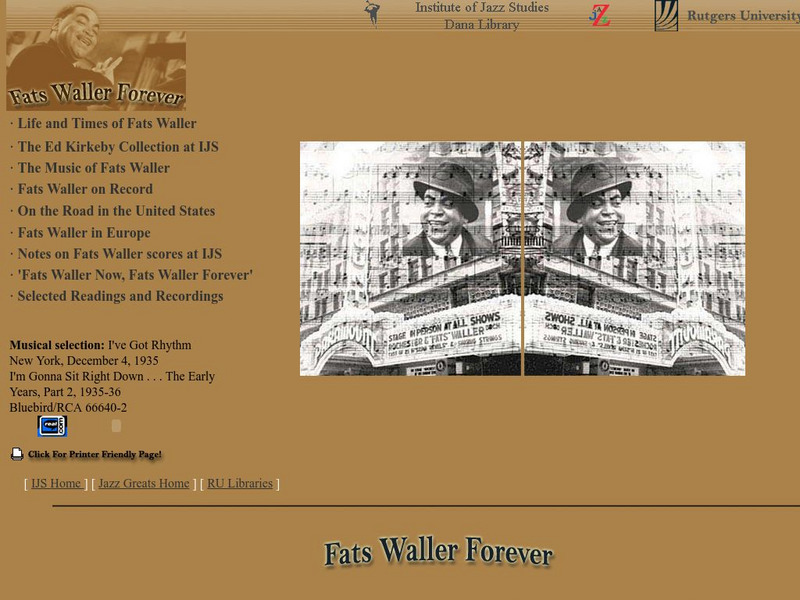 This digital exhibit provides a basic overview of Fats Waller and his music. Divided into sections that cover Life and Times, Ed Kirkeby Collection, the music, recordings, European and US tours, notes, and more.