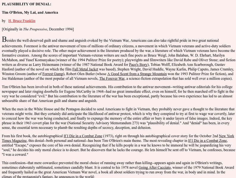The Progressive magazine article is reprinted here. It is an excellent examination of the Vietnam War in literature. (Published: December 1994)