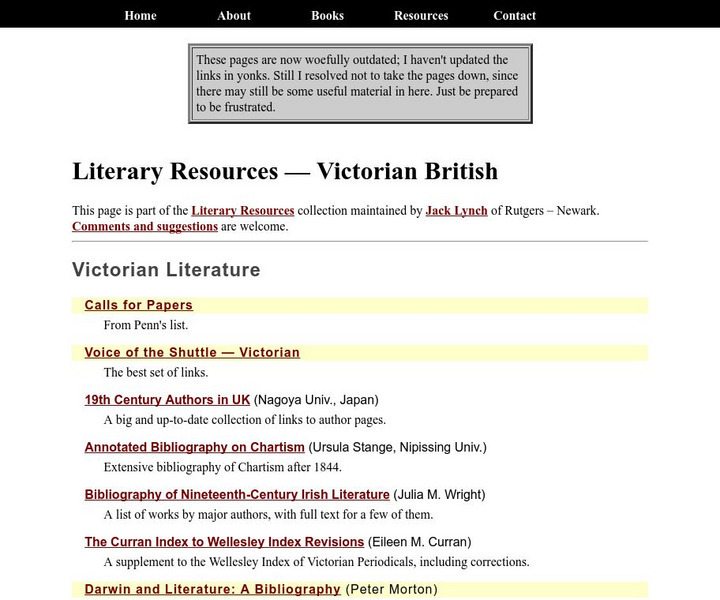Have you ever wanted to know more about British Victorian literature? Check out this informative site highlighting literary resources from the British Victorian Age. As Professor Jack Lynch, who created the list, has noted, these pages...