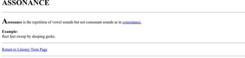 This is a glossary entry for the term "Assonance" including a definition and an example.