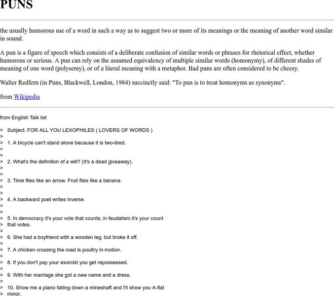 Cyber English (By Ted Nellen): Puns