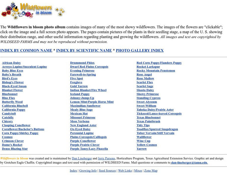 The Wildflowers in bloom photo albumcontains an extensive look at beautiful images of many of the most showy wildflowers.