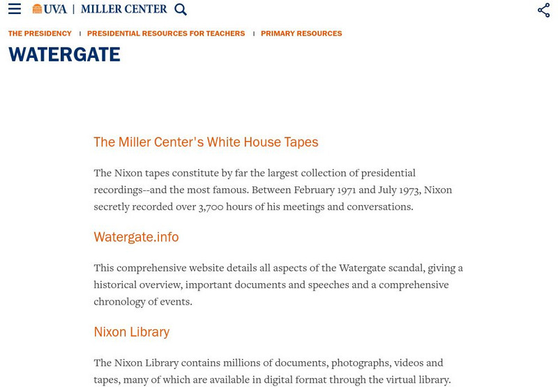 Miller Center at Uva: Presidential Recordings Program: Watergate Collection