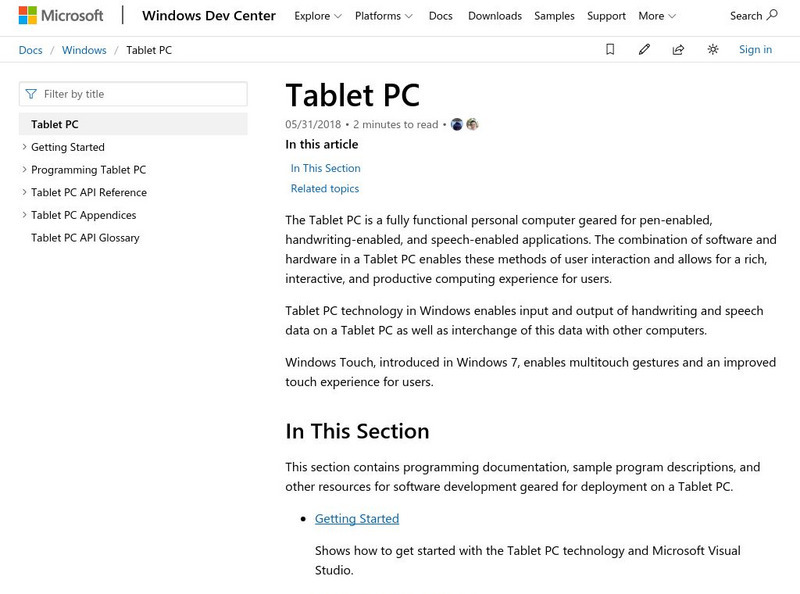 Discover the unique features of the Tablet PC. Links to other pages about the Tablet PC on this site.