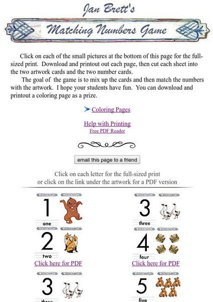 Jan Brett: Matching Words and Numbers Flashcards for 1 30 Pdf