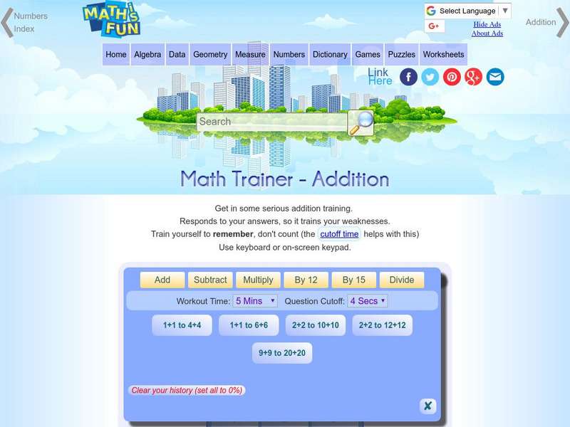 Train your brain with this timed math "workout" that challenges you to learn your addition facts so that you don't have to rely on counting when adding numbers.