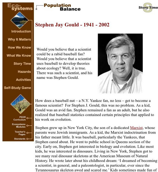 An in-depth biography of Rachel Carson which gives background on her interest in biology and her eventual writing of the seminal book on ecology Silent Spring. Many hyperlinks for additional information.