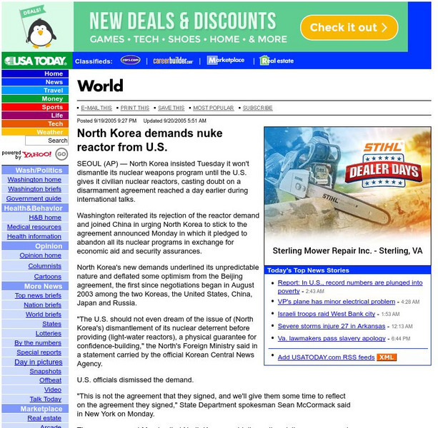 Usa Today: North Korea Demands a Nuclear Reactor From Us