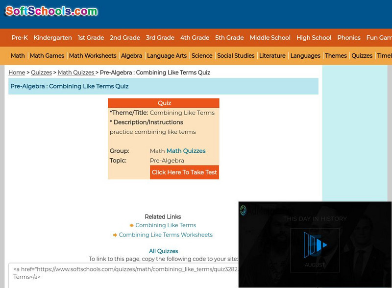 This is a ten-question, multiple-choice quiz that tests students knowledge of order of operations. A results summary is given at the end of the quiz, and students may revisit and review problems they missed.