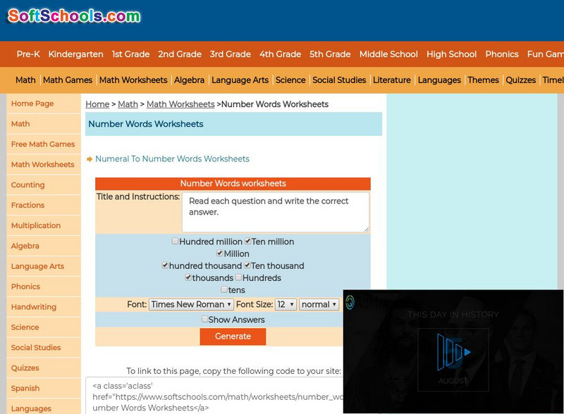 Generate a worksheet that gives a numeral and the student writes the number word. You have the option of showing the answers to the problems.