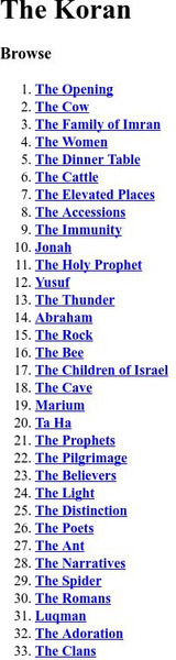 Allows readers to read any or all of 114 chapters of the Koran, as translated by M.H. Shakir.