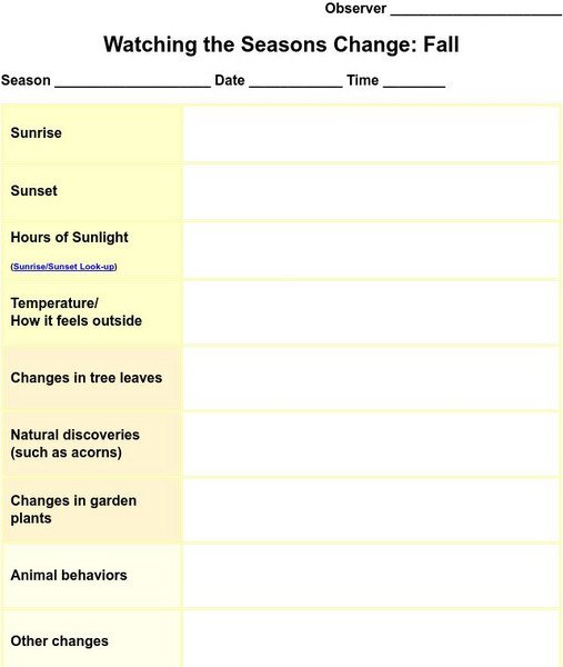 This is an appropriate resource for investigating the impact seasonal change has on organisms. Have your students track the changes that come with fall by journaling. The online table addresses physical changes in the environment...