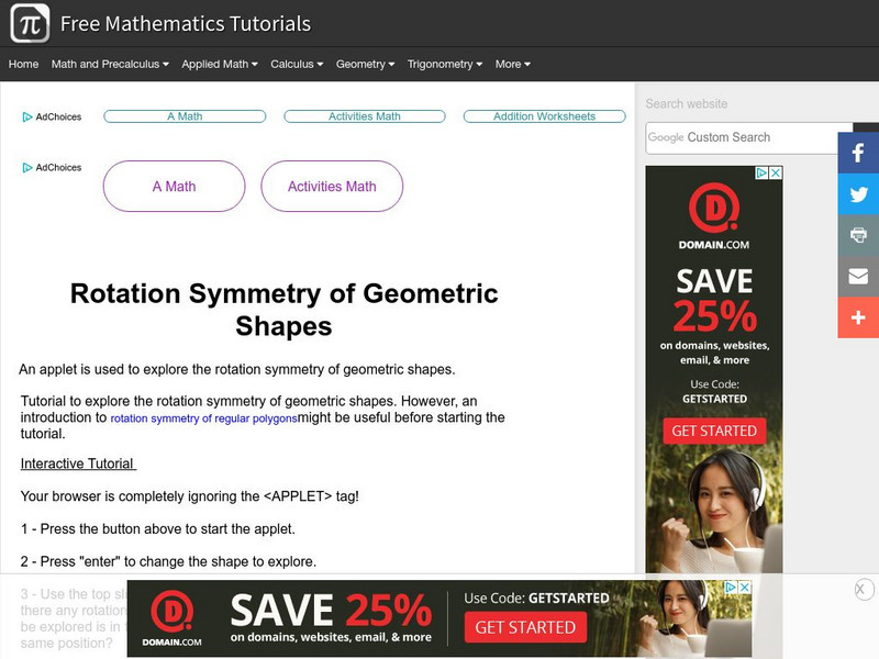 An applet is used to explore the rotation symmetry of geometric shapes. [Requires Java.]