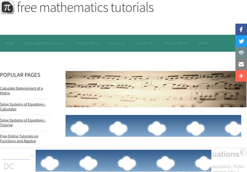 Learners are introduced to the Algebra II topic of solving systems of linear equations. The tutorial proves Cramer?s rule of solving 2 by 2 systems of equations. The activity includes a defintion and an example with a detailed solution.