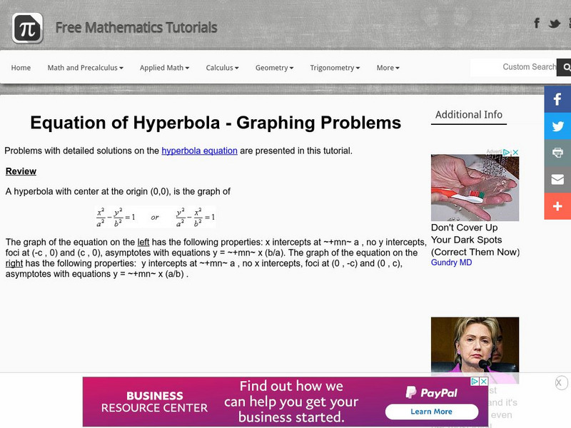 Analyze Math: Equation of Hyperbola: Graphing Problems