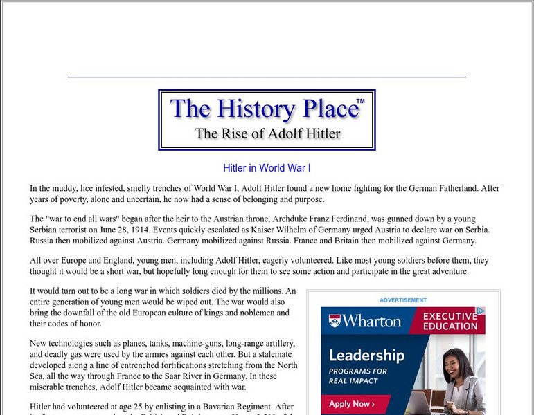 The History Place: The Rise of Adolf Hitler: Hitler in World War I
