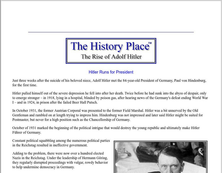 The History Place: The Rise of Adolf Hitler: Hitler Runs for President
