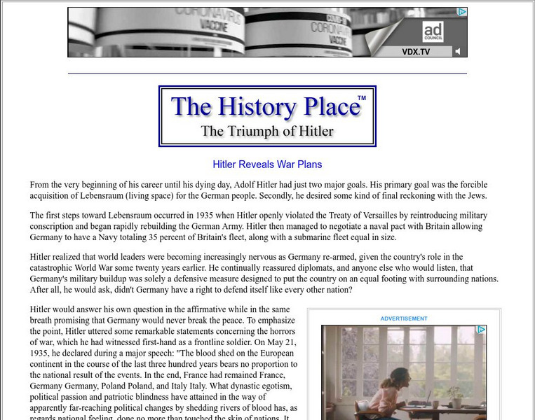 The History Place: The Triumph of Hitler: Hitler Reveals War Plans