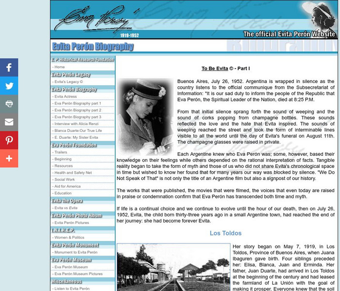 This site, maintained by the family of Eva Peron, provides links to complete information and photographs of Eva Peron.