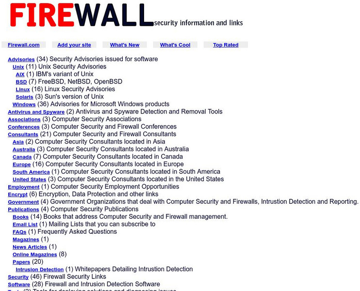 Directory of firewall and computer security information includes tools, reviews of several popular packages, patches, employment, articles, and more.