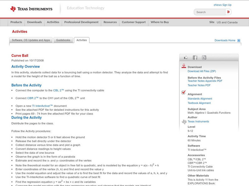 In this activity, students collect data for a bouncing ball using a motion detector. They analyze the data and attempt to find a model for the height of the ball as a function of time.