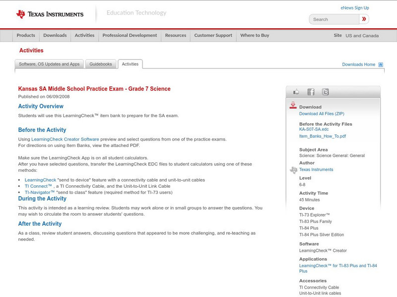 Texas Instruments: Kansas Sa Middle School Practice Exam Grade 7 Science